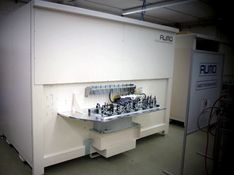 Diese Anlage dient der präzisen Oberflächenstrukturierung von Aluminiumelementen mittels Lasertechnologie. Das System wurde speziell zur Vorbehandlung von Klebeflächen innerhalb einer automatisierten Fertigungslinie für Elektrofahrzeug-Batterien entwickelt. Die Anlage ermöglicht eine kontinuierliche Bearbeitung von Werkstücken mit Abmessungen bis zu 1.300 mm x 100 mm. Durch die gezielte laserbasierte Aufrauung wird die Oberflächenenergie signifikant erhöht, was eine reproduzierbare und hochfeste Adhäsion im anschließenden Klebeprozess gewährleistet.