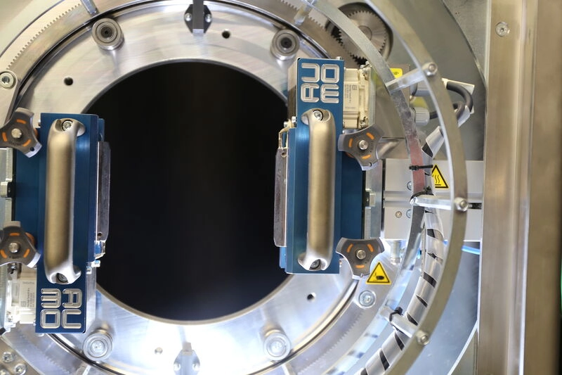 Die Anlage ist speziell für die thermische Fixierung von CFK- und GFK-Flechtschläuchen konzipiert. Das System ermöglicht eine präzise Stabilisierung sowohl in axialer als auch in radialer Richtung, um die Formgenauigkeit der Faserstrukturen für nachfolgende Prozesse sicherzustellen. Die modulare Architektur erlaubt die Kaskadierung mehrerer Fixiereinheiten zur Skalierung der Produktionskapazität. Optional kann das System um eine integrierte Tapeeinheit zur automatisierten radialen Applikation ergänzt werden, was die strukturelle Stabilität der Bauteile weiter erhöht.